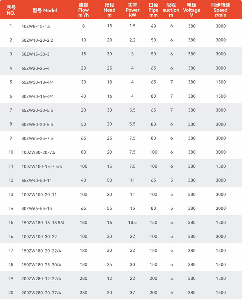 ZW型自吸式無堵塞排污泵集自吸和無堵塞排污于一體,采用軸向回流外混式,并通過泵體、葉輪流道的獨(dú)特設(shè)計(jì),不需安裝底閥和灌引水,可吸排含有大顆粒固體直徑為出口口徑的60和纖維長度為出口口徑5倍的雜質(zhì)液體,其自吸高度5米,可取代各類潛水式、液下式排污泵等。